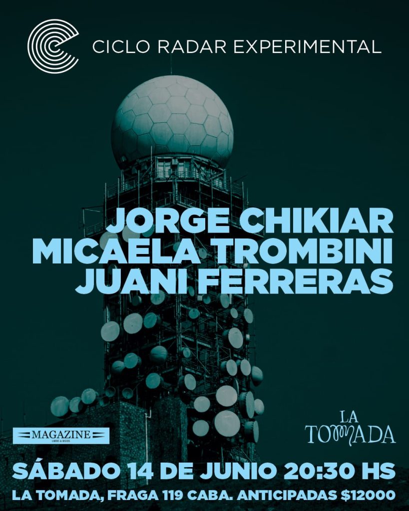 Este sábado 14 de junio, La Tomada (Fraga 119, Chacarita) abre sus puertas para una nueva edición del Ciclo Radar Experimental, un evento que reúne a tres figuras destacadas de la escena sonora y performática: Jorge Chikiar, Micaela Trombini y Juani Ferreras. Con una capacidad limitada, las anticipadas están disponibles por $12.000 al alias radar.experimental. La noche se completa con la tienda itinerante de objetos culturales de Nicolás D. Bedini y el bar de La Tomada, creando un espacio donde arte, música y literatura convergen en una experiencia inmersiva.